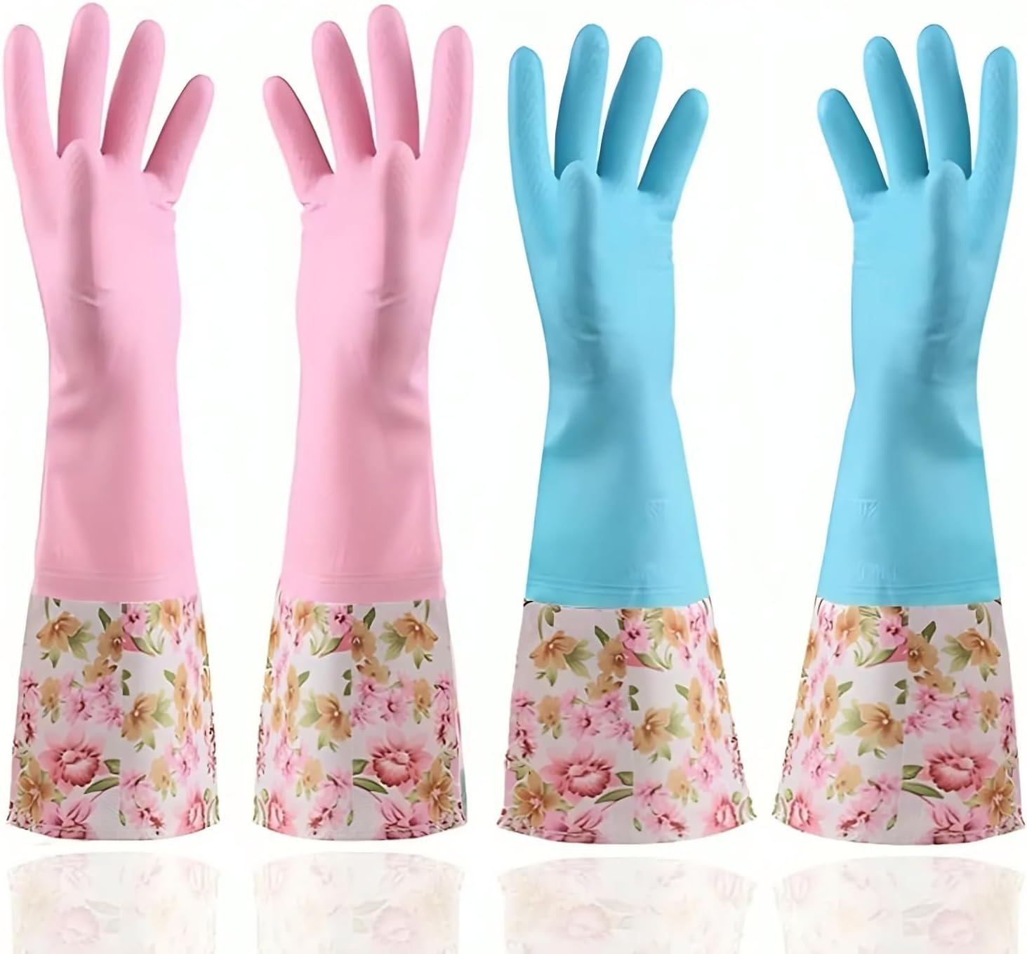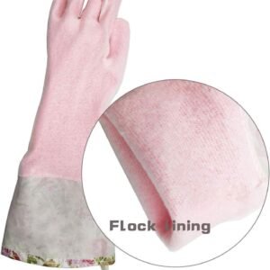 Rubber Latex Waterproof Dishwashing Gloves,2 Pair Medium Long Cuff Flock Lining Household Cleaning Gloves